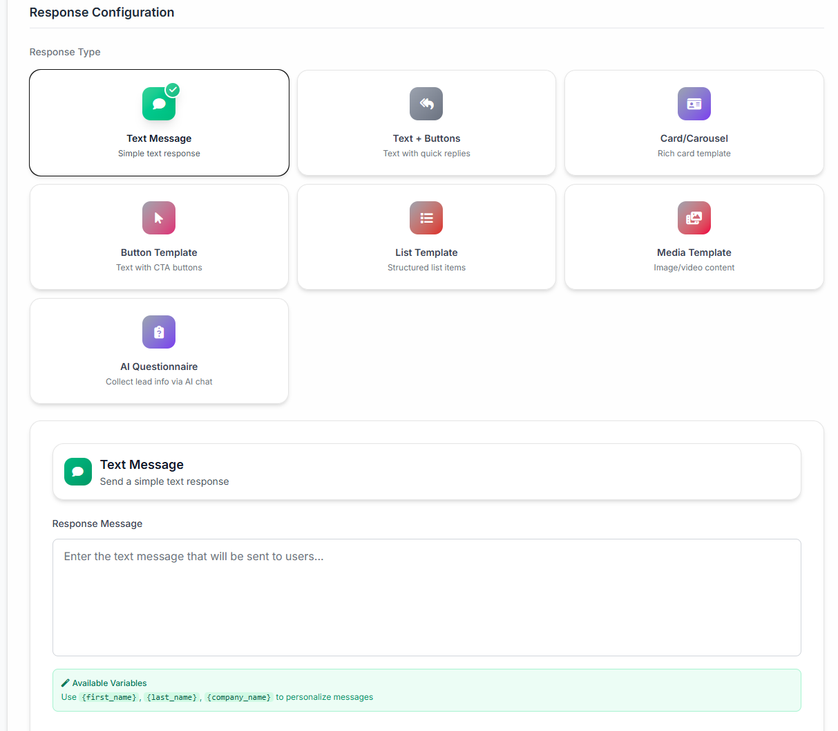 Start with simple text responses to understand the fundamentals. → Text Responses Tutorial